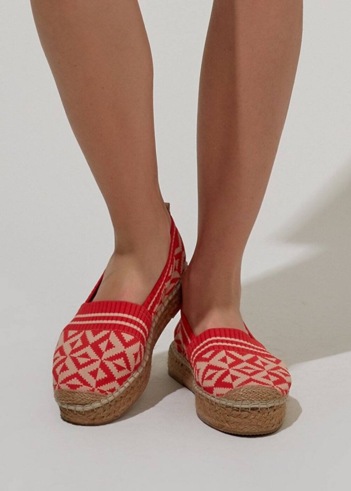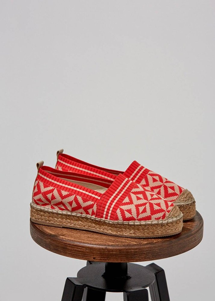 Desenli Kırmızı Espadril Triko Ayakkabı