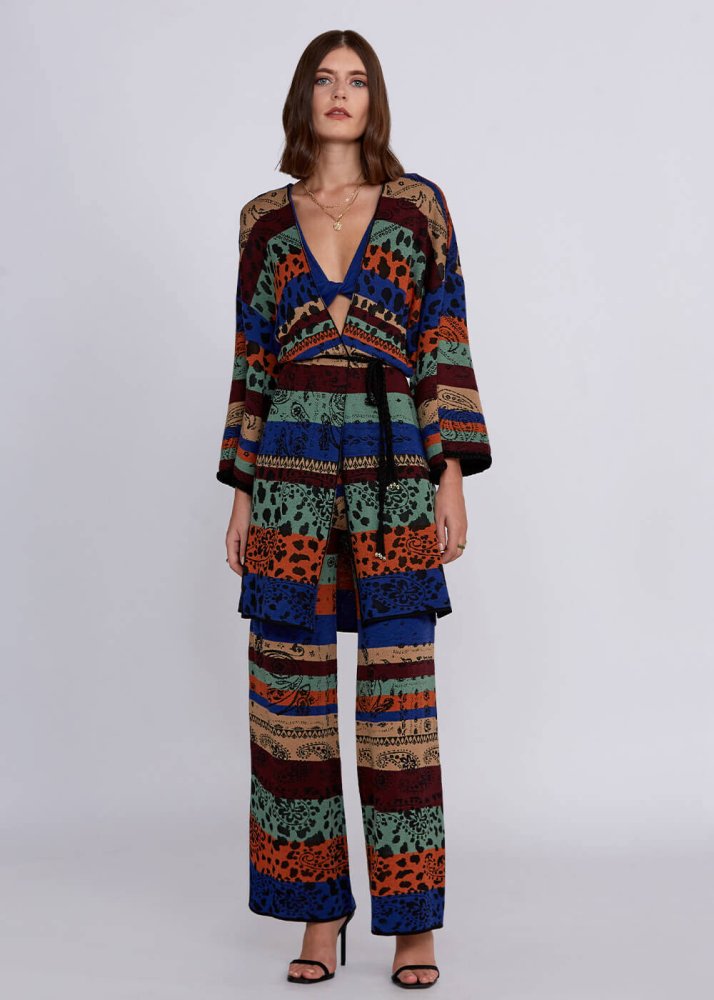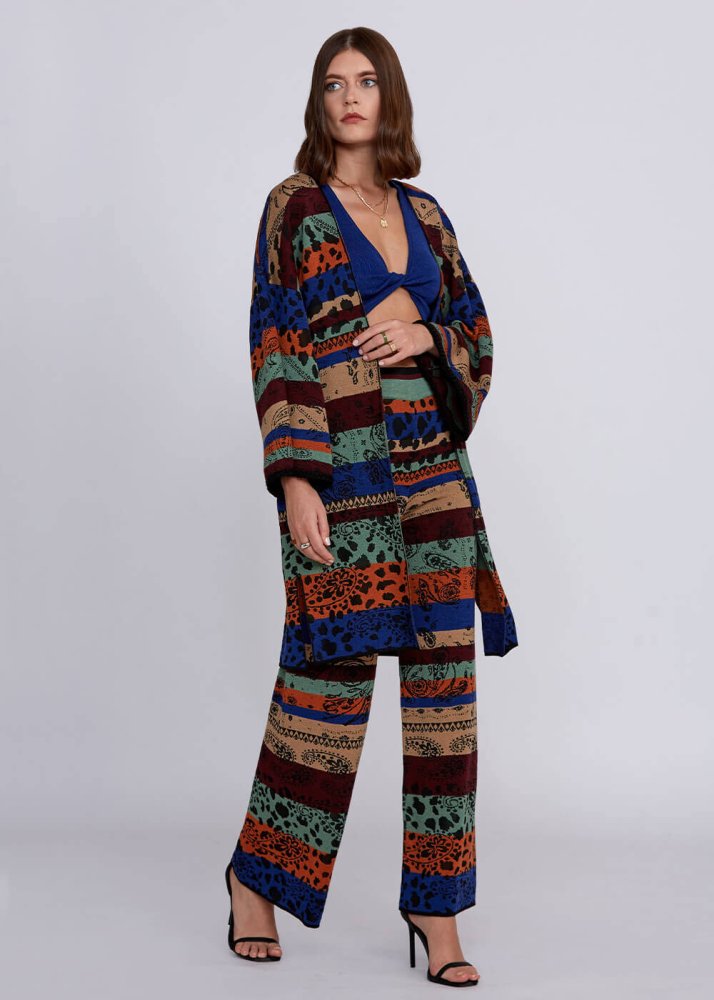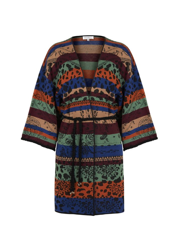 Desenli Merino Yün Karışımlı Triko Kimono