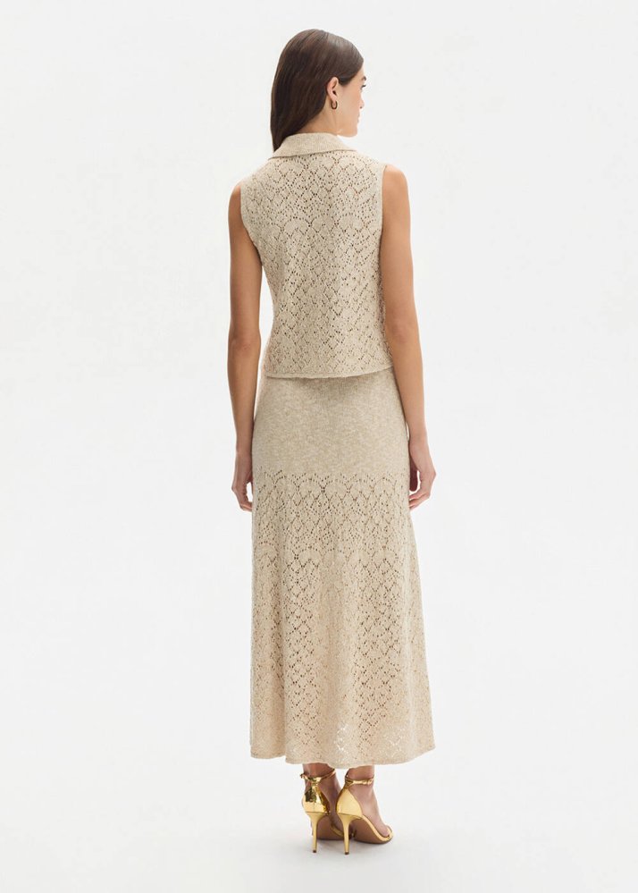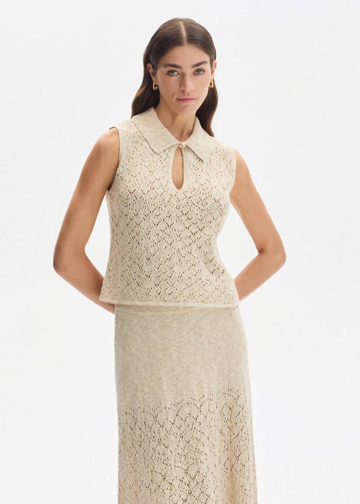 DROP COLLAR SAND KNIT TOP
