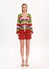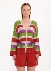 Özgür ruhunu ve enerjisini giyimine yansıtan Knitss kadınlarının kalp atışlarını hızlandıracak renk bloklu yazlık triko hırkayı keşfedin. Cesur renklerin uyum içinde cesurca bir arada kullanıldığı düğmeli ince triko hırka, bel kısmından bağcıklı çağdaş stili ve zarif örgü dokusu ile fark yaratır. Sertifikalı geri dönüştürülmüş İtalyan ipliklerinin doğal kalitesini her giyişte hissettirir.