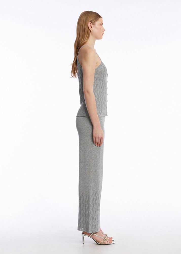 İnce fitil örgü tekniğiyle hayat bulan düğme kapamalı gri triko üst, modern çizgileri ve rafine duruşuyla günlük şıklığın anahtar parçalarından biri. Nötr gri tonu, farklı parçalarla zahmetsizce uyum sağlarken, özenle tasarlanmış düğme detayları modele zarif bir dokunuş katar. Hem ofis stilinde hem de hafta sonu kombinlerinde rahatlıkla tercih edilebilecek bu tasarım, aynı tonda gri triko pantolon ve gri triko hırka ile tamamlandığında bütünlüklü ve sofistike bir görünüm sunar.