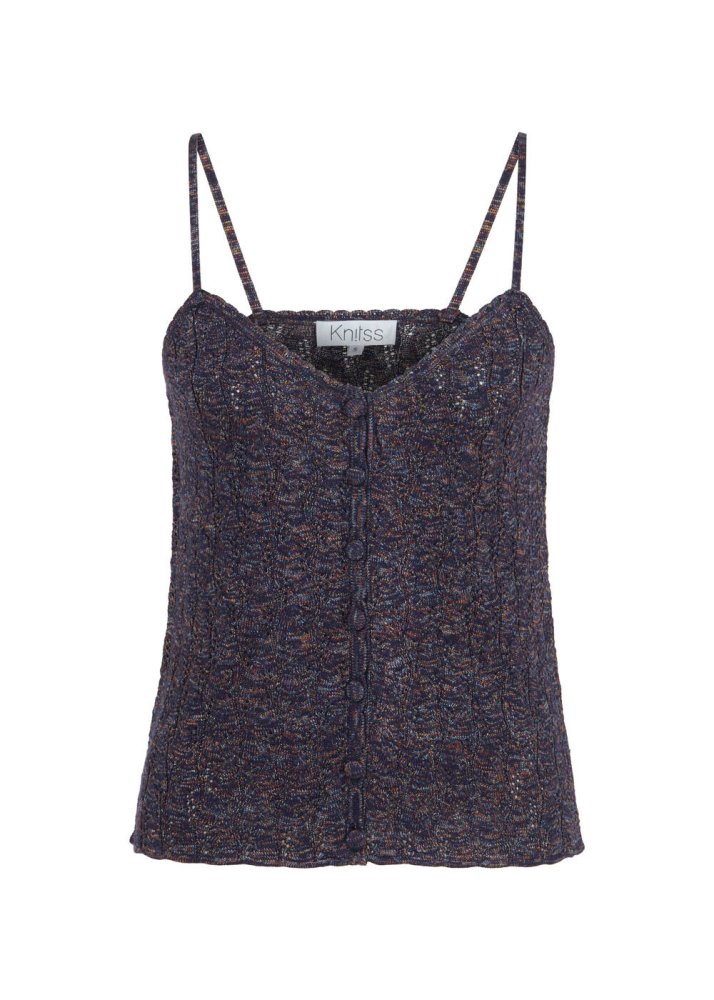 Düğme Kapamalı Mor Triko Üst