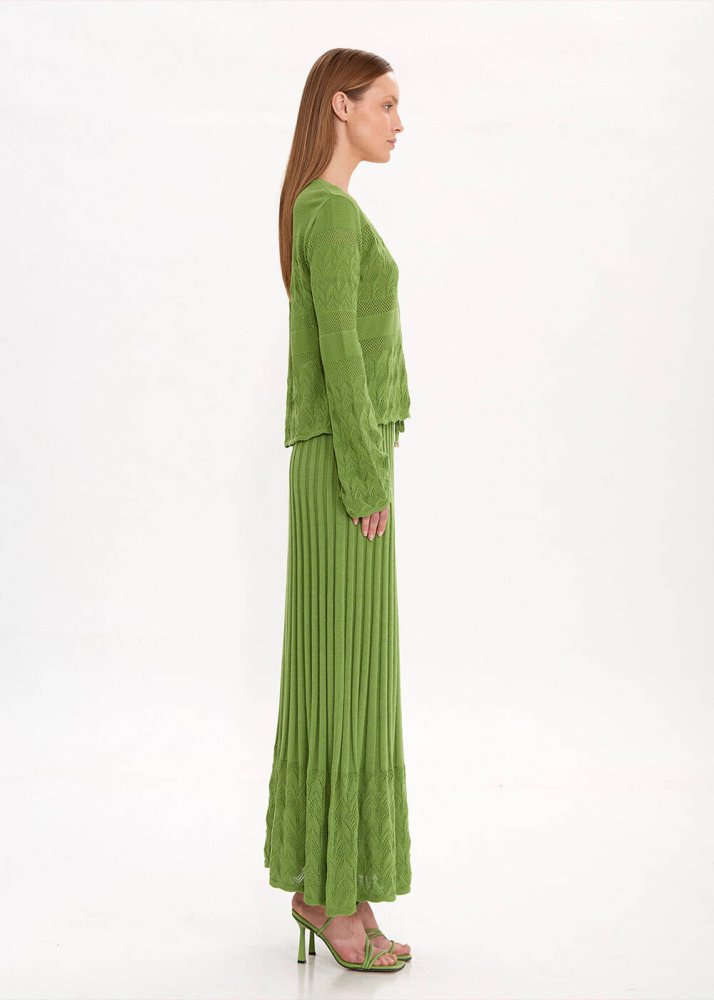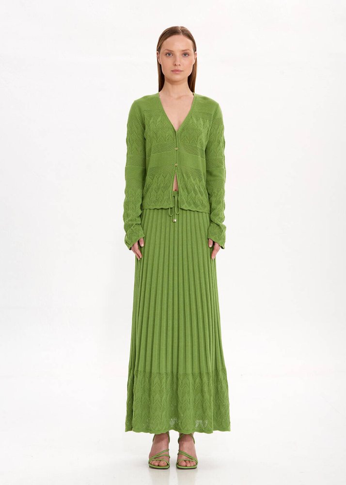 Lou Skirt Pile Detaylı Yeşil Triko Etek