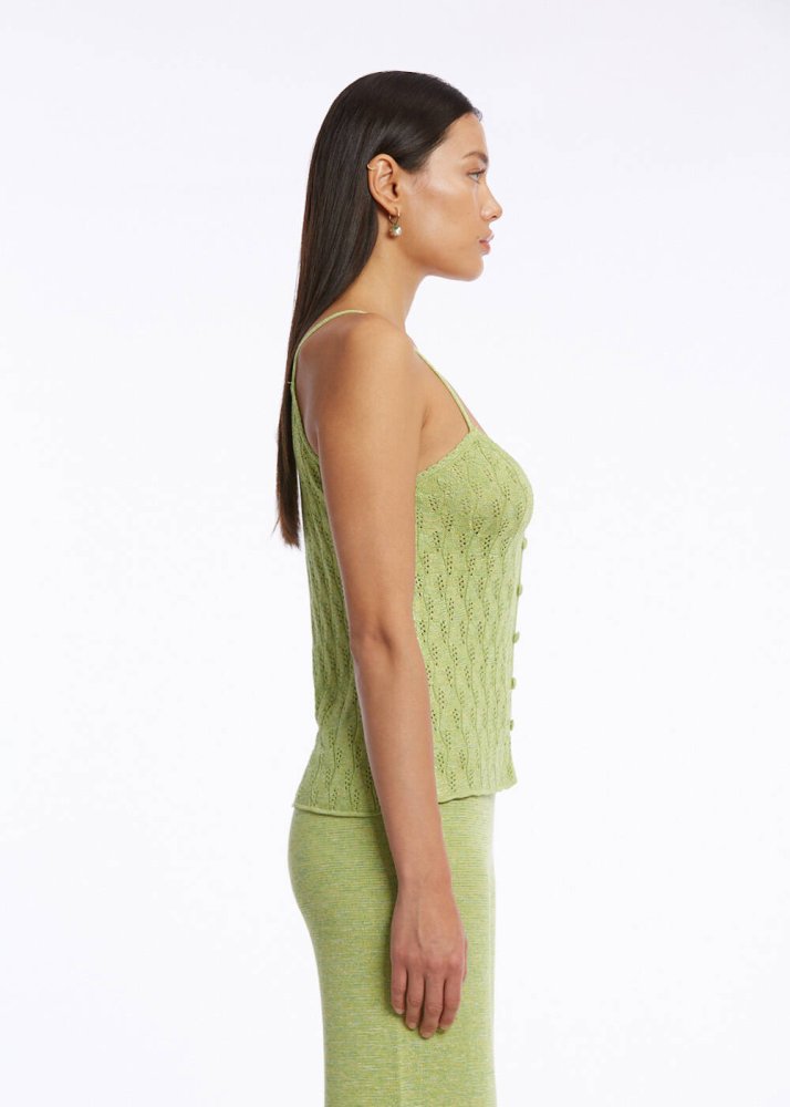 Doğanın tazeliğini stilinize taşıyan düğme kapamalı yeşil triko üst, Knitss’in zarif ve modern çizgisini yansıtan özel bir tasarım. Yeşilin huzur veren tonu, sade kombinlere canlılık katarken; özel üretim düğmeler, modele zarif bir dokunuş ekler. Aynı tonlardaki yeşil triko pantolon ve hırkayla tamamlandığında ise şık ve uyumlu bir kombin ortaya çıkar. Knitss’in sofistike ve özgün tasarımıyla şekillenen bu model, gardırobunuza zarif bir dokunuş ekler ve her kombinle mükemmel uyum sağlar.