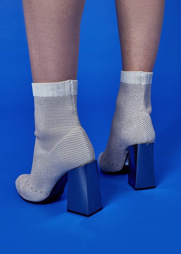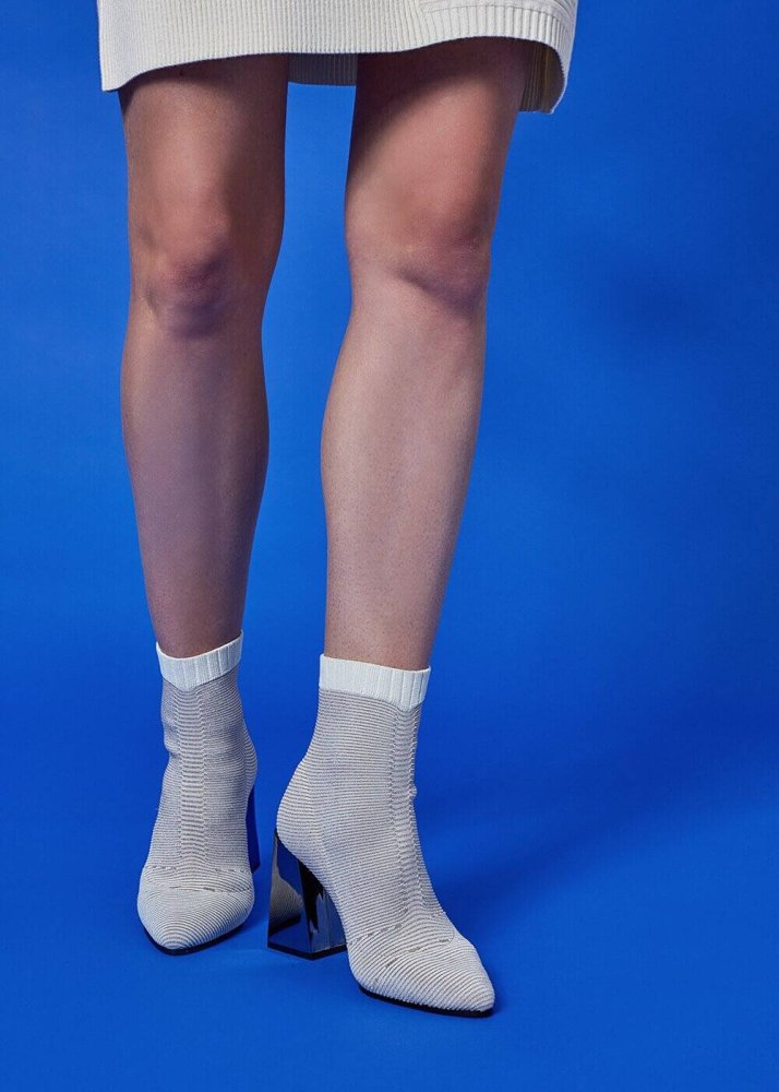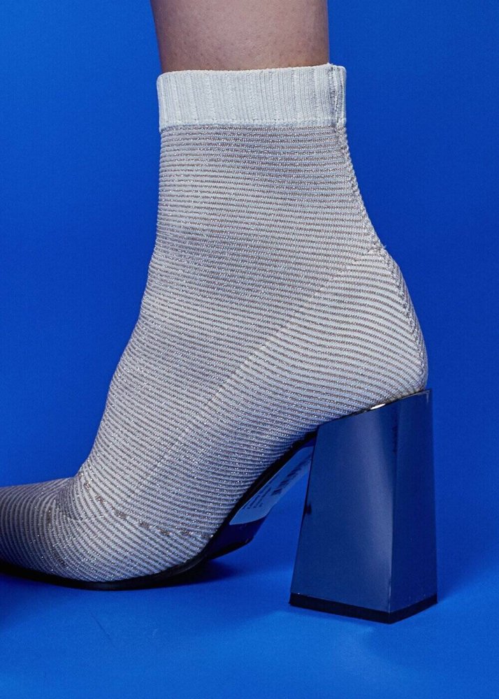 Ecru Lurex Knit Sock Booties