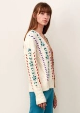 El işlemeli bej triko hırka, Knitss DNA’sında yer alan renk ve desen oyunlarına sahiptir. V yaka triko kazak, Global Recycled Standard sertifikalı geri dönüştürülmüş elyaflardan ile üretilmiştir. Hafta içi ve hafta sonu kombinleriniz için ideal bir parça olan triko kazak, koleksiyonun diğer parçaları ile rahatlıkla kombinleyebilirsiniz.