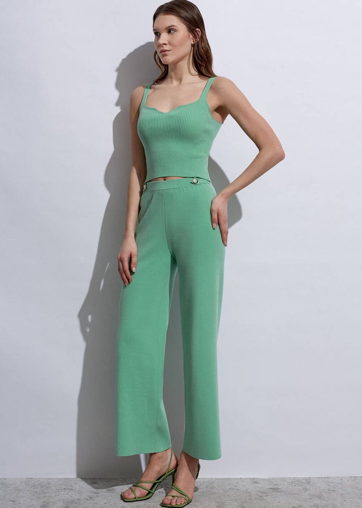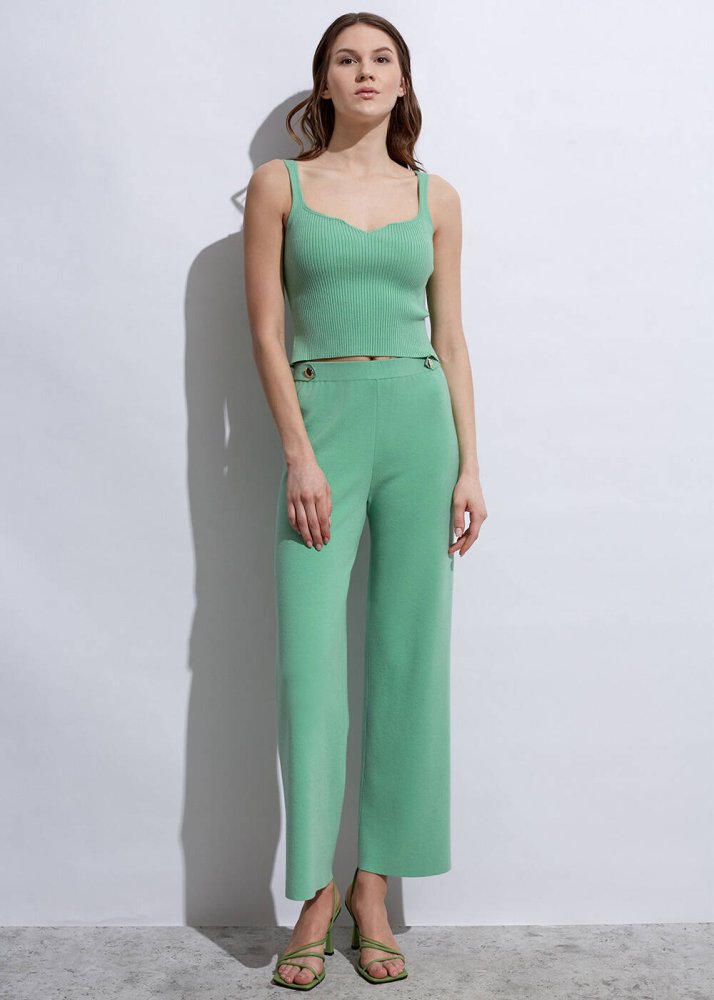 Epaulette Detaıled Apple Mint Knıt Pants