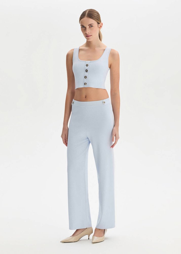 Epaulette Detaıled Sky Knıt Pants
