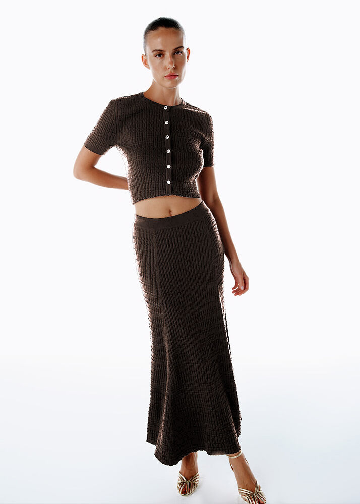 Özel Örgü Detaylı Koyu Kahverengi Triko Etek