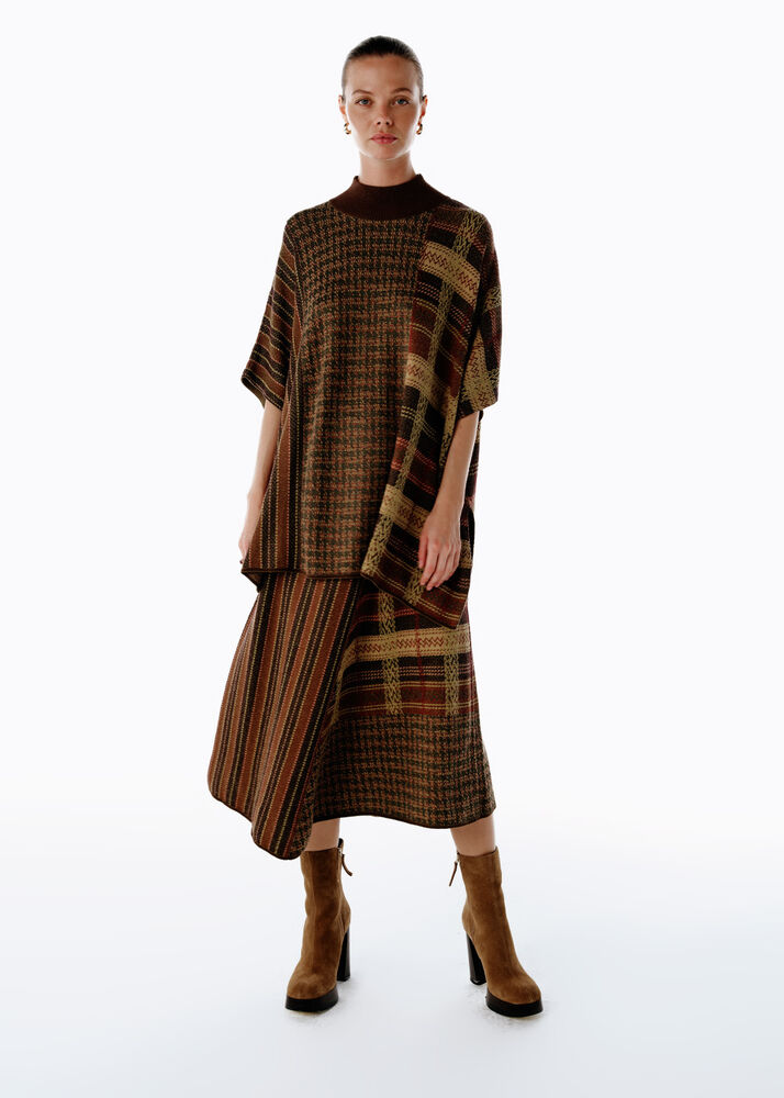 Patchwork Desenli Triko Etek