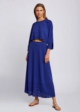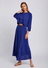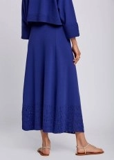 İndigo rengi midi triko etek, Knitss koleksiyonu ayrıcalığı ile yaz günlerinin kurtarıcı parçası olmaya aday. Kloş midi triko etek, etek ucundaki detayı ile şık ve rahat bir tarz sunar. Aynı serinin devam parçası olarak tasarlanmış Panoa Top ve Panoa Cardigan ile kombinleyerek sade, zarif ve tamamlanmış bir görünüm elde edebilsiniz.