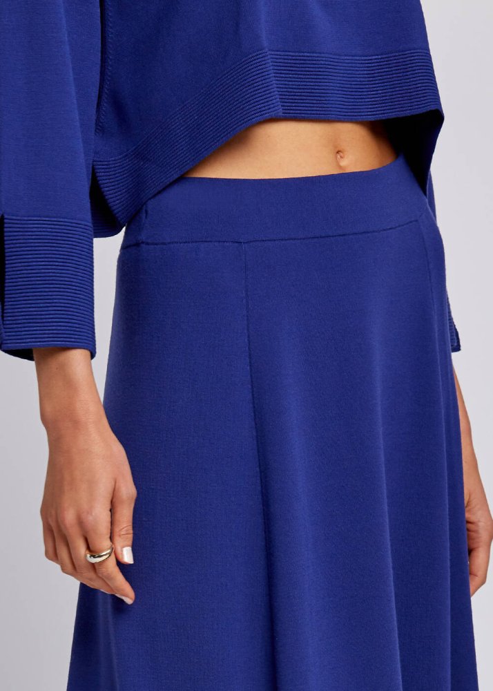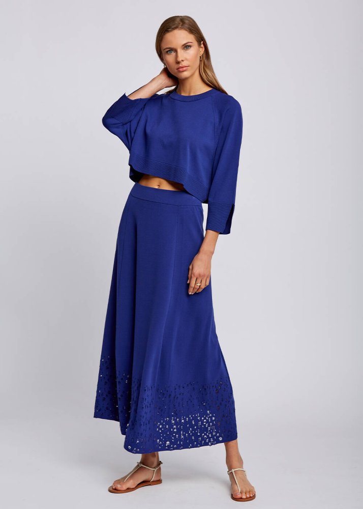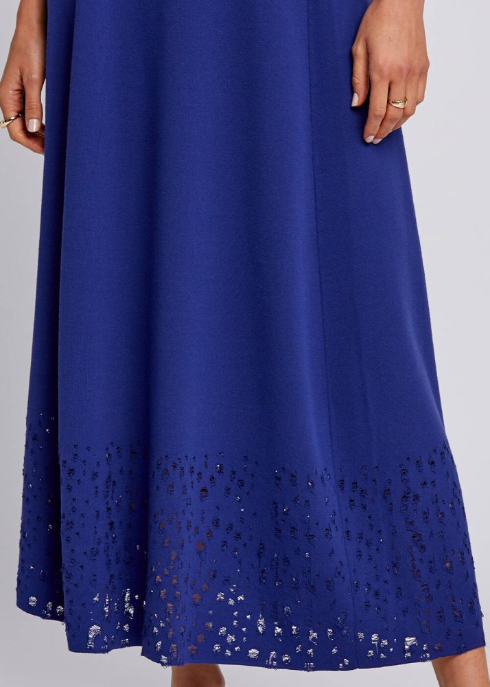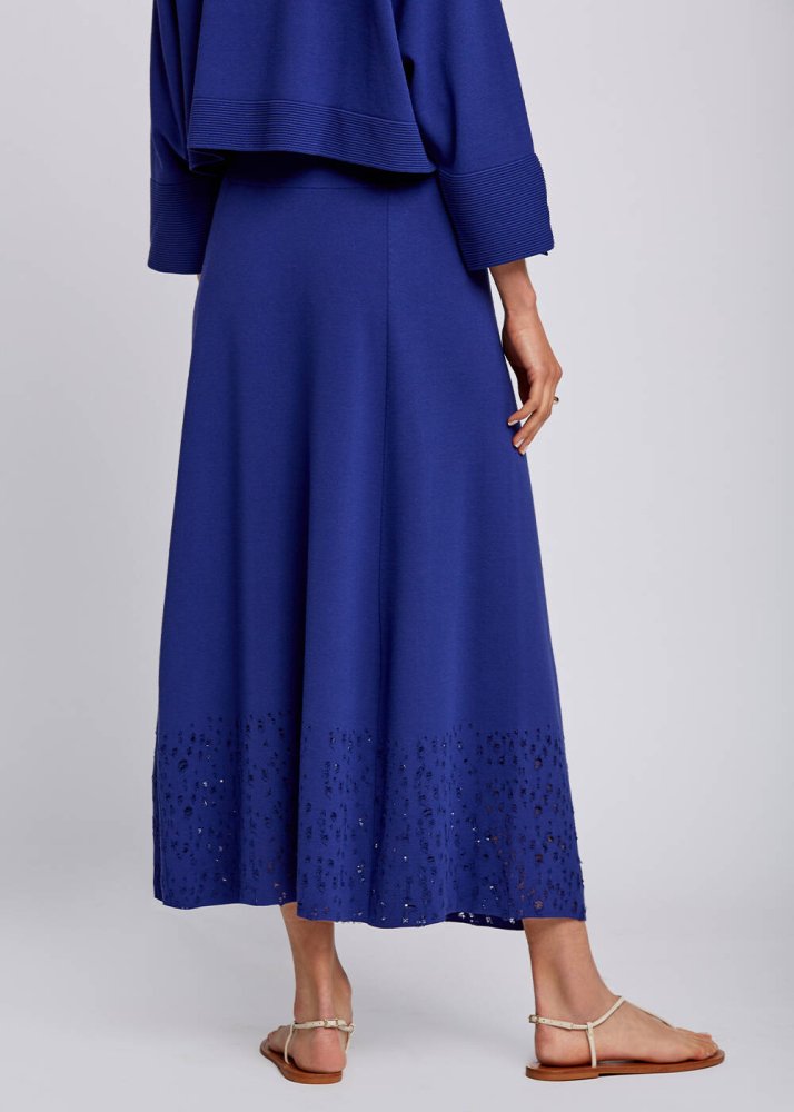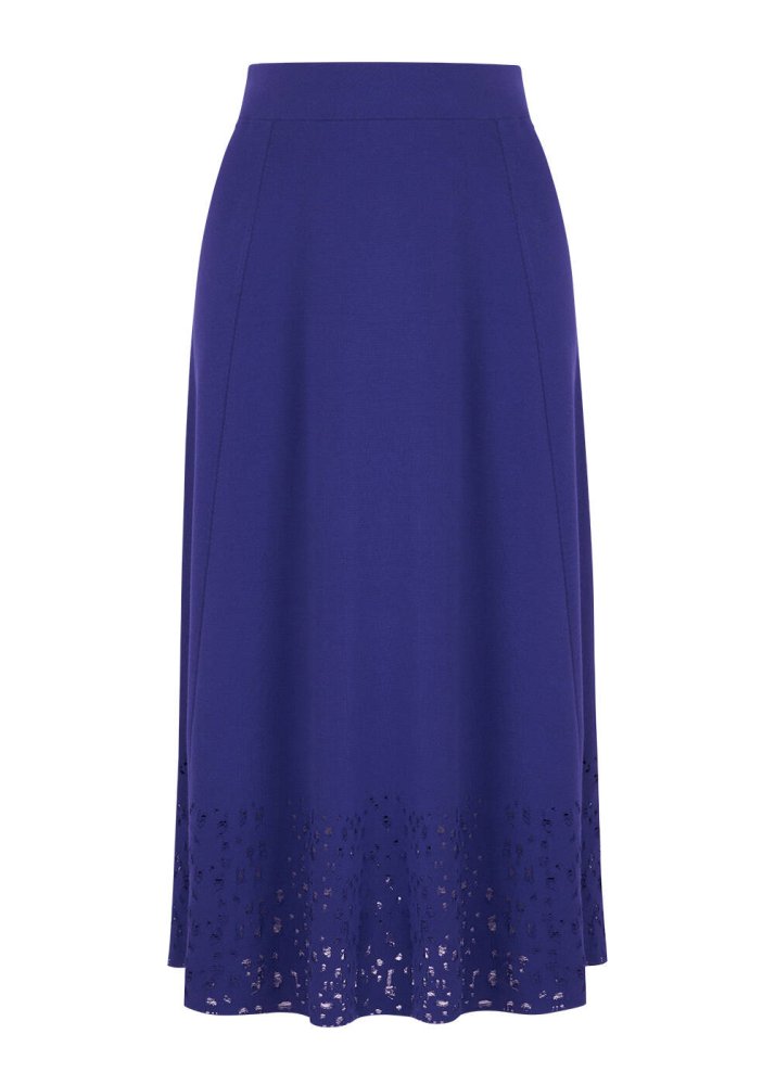 Etek Ucu Perforeli İndigo Midi Triko Etek