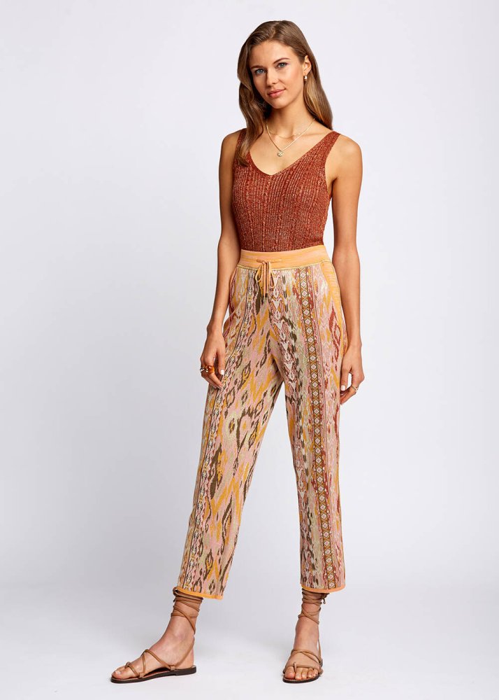 Etnik Desenli Jakar Örgü Triko Pantolon