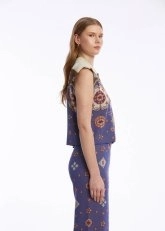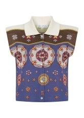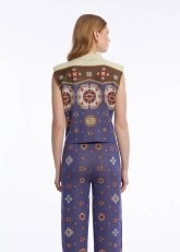 Özgün stilini ayrıcalıklı parçalarla kombinlerine yansıtan Knitss kadınları için üretilen etnik desenli polo yaka kolsuz triko üstü keşfedin. Vataklı omuzları, kolsuz polo yaka tasarımı, çarpıcı renkleri ve şık etnik deseni ile geçmişin izlerini çağdaş triko stili ile buluşturan bu parça, pamuk karışımlı geri dönüştürülmüş İtalyan iplik içeriği ile sürdürülebilir modayı yazlık kadın kombinlerine taşır.