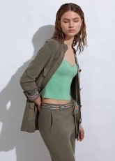 İlkbahar mevsimine uyum sağlayan rengiyle şık bir görünüm sunan triko ceket, etnik şerit detayları ile kombinlerinize Knitss ayrıcalığı katacak. Haki renkli kadın triko ceket modeli, fonksiyonel 4 cep ve belden ayarlanabilir bağcık detaylarına sahiptir. File örgülü triko ceket, business ve günlük stilinizin ideal tamamlayıcısı olacaktır.