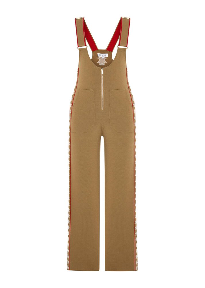 İtalyan ipliğinden üretilen extrafine merino yün dokusuyla bu triko tulum, Knitss’in fonksiyonel şıklık anlayışını güçlü bir şekilde yansıtır. Camel renginin sıcak ve doğal tonu, tasarıma zarafet kazandırırken sade ama etkili bir duruş sunar. Fermuarlı yapısı pratik kullanım sağlarken, cepli formu gün boyu konforu destekler. Ayarlanabilir askılar, bedene uyumlu, kişisel bir siluet yaratmaya olanak tanır. %100 merino yün yapısı sayesinde nefes alır, yumuşak dokusuyla tenle uyum içinde çalışır. Tek başına güçlü bir stil sunan bu tulum, soğuk günlerde katmanlı kombinler için de ideal bir temel parçadır.