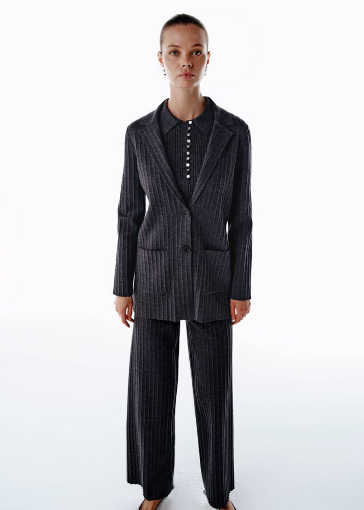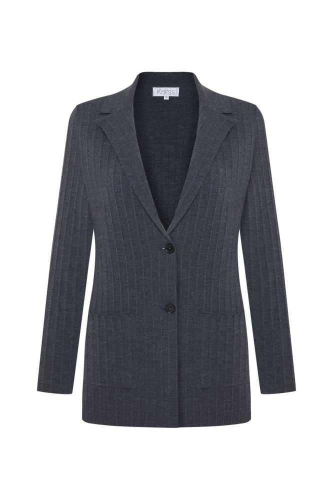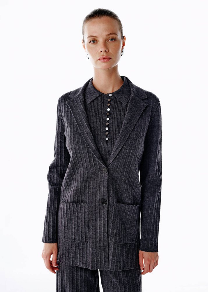 EXTRAFINE MERINO WOOL RICH BLEND KNIT JACKET DARK GREY
