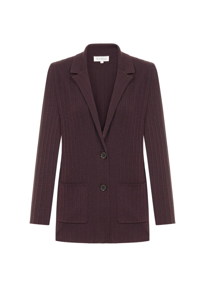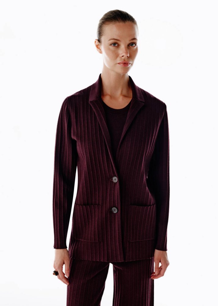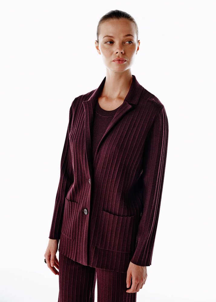 EXTRAFINE MERINO WOOL RICH BLEND KNIT JACKET PLUM