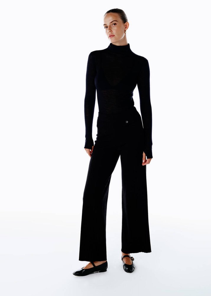 EXTRAFINE MERINO WOOL RICH BLEND KNIT PANTS BLACK