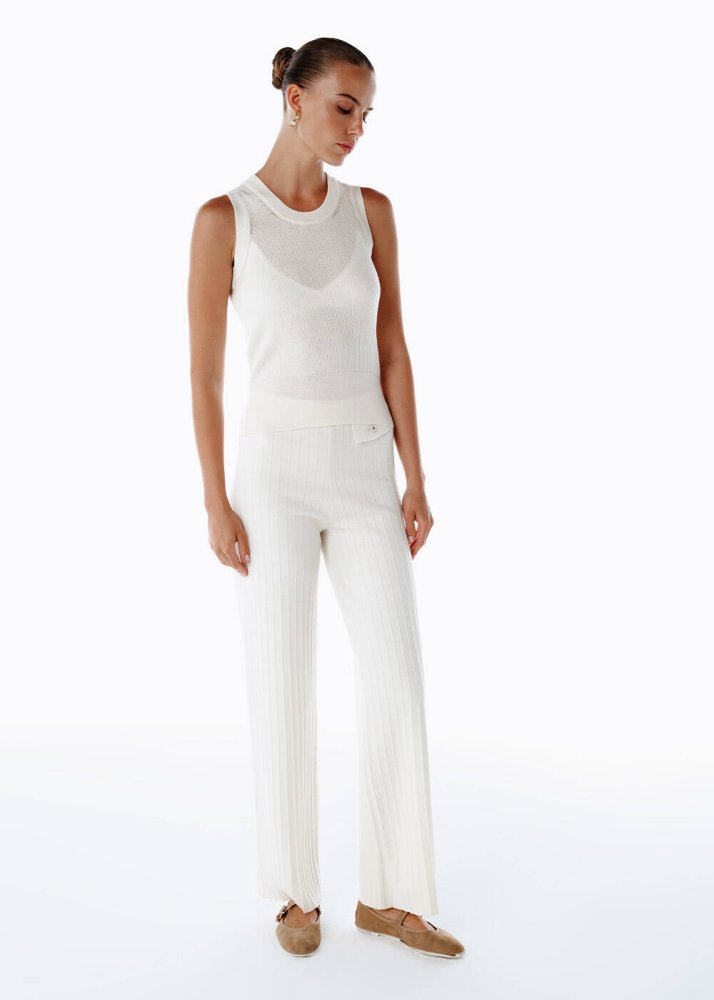 EXTRAFINE MERINO WOOL RICH BLEND KNIT PANTS ECRU