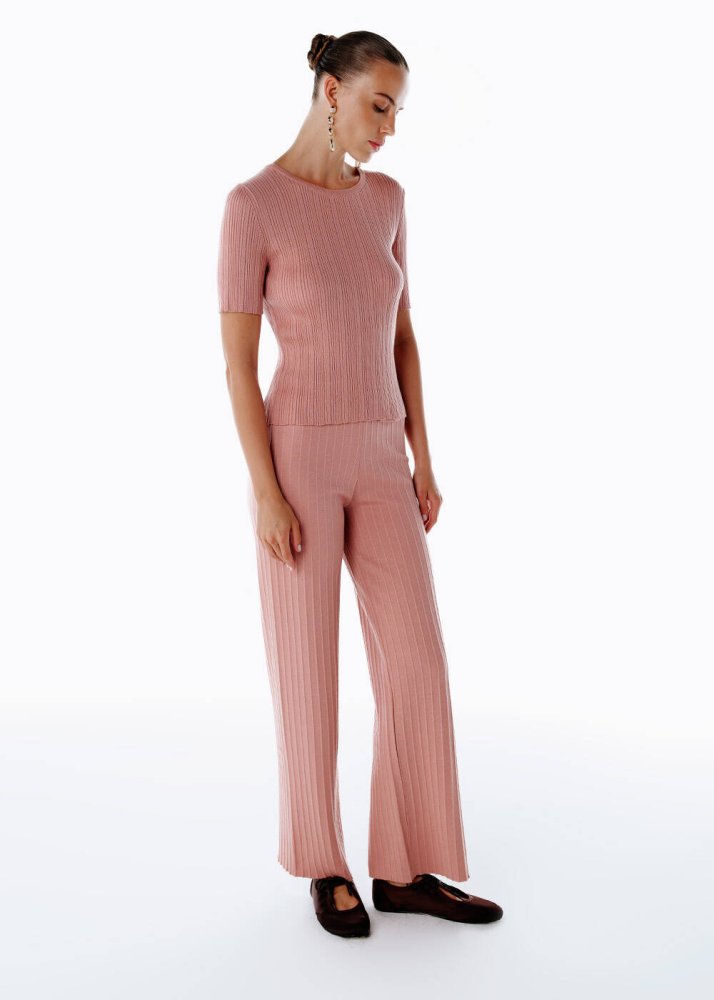 EXTRAFINE MERINO WOOL RICH BLEND KNIT PANTS PINK CLAY