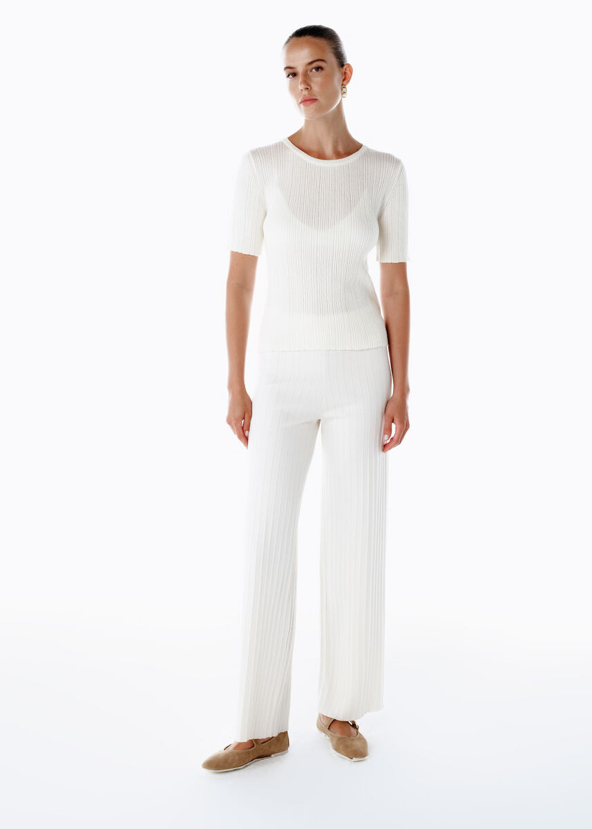Extrafıne Merino Yün Karışımlı Triko Pantolon Ekru