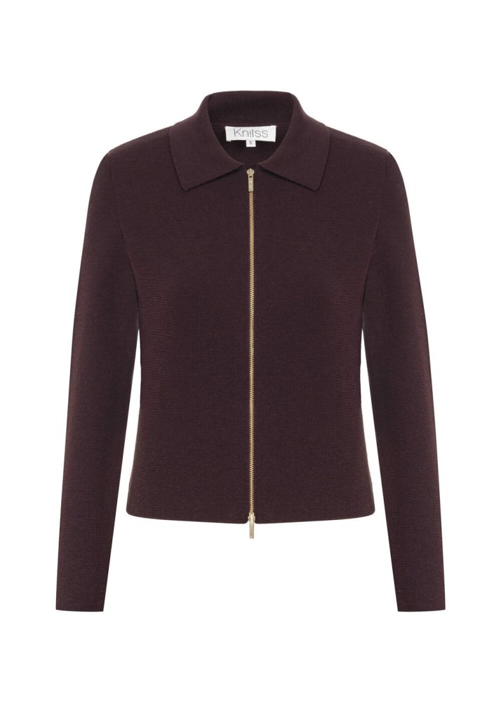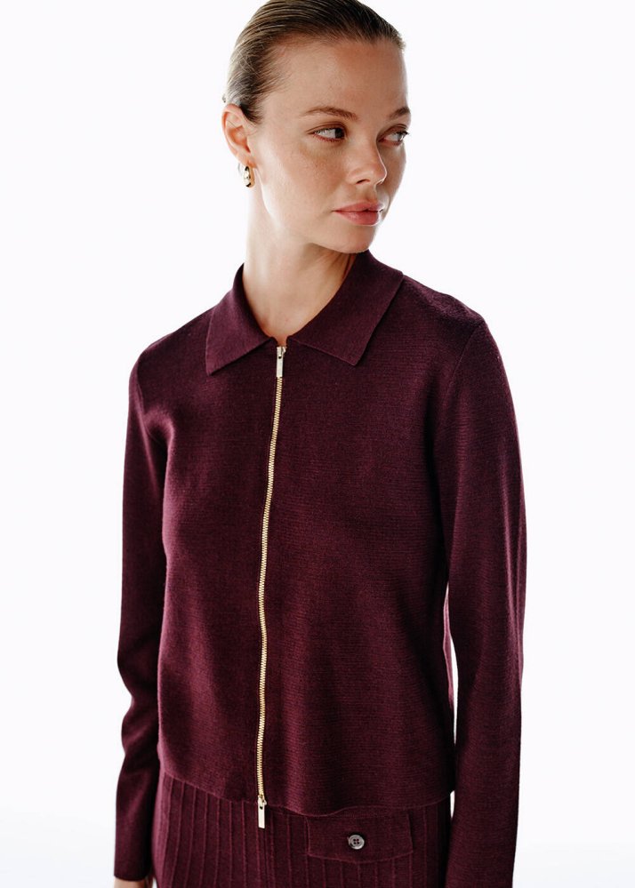 Extrafıne Merino Yün Karışımlı Mürdüm Triko Ceket