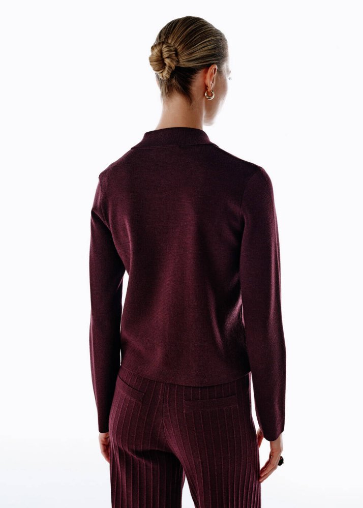 Kolsuz Extrafıne Merino Yün Karışımlı Triko Üst Mürdüm
