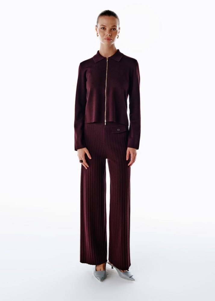 Extrafıne Merino Yün Karışımlı Triko Pantolon Mürdüm