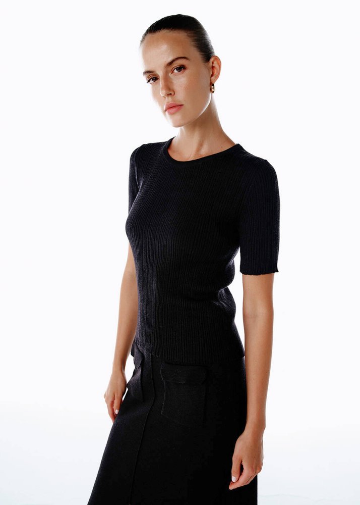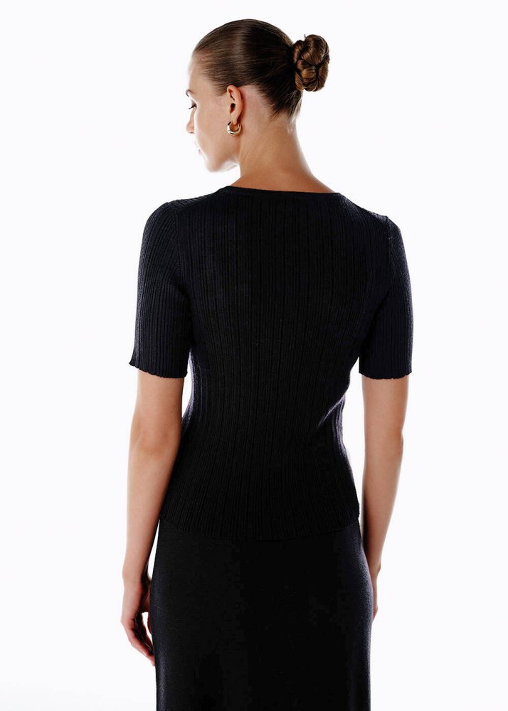 Extrafıne Merino Yün Karışımlı Siyah Triko Üst