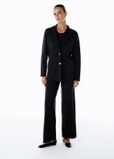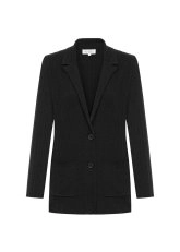 Extrafine merino yün karışımlı siyah triko ceket modern ve rahat formu ile şıklığı hayatın her anına taşıyor. Akıcı silueti sayesinde hem ofis şıklığına hem de şehirli günlük kombinlere kolayca uyum sağlarken yumuşak dokusu ve hafif formu ile konforlu bir kullanım sunuyor. Minimal ve çağdaş detaylarıyla şehirli kadın ruhuna hitap eden bu ceket, günün farklı anlarına zahmetsizce adapte edilebilecek lüks bir seçimdir.