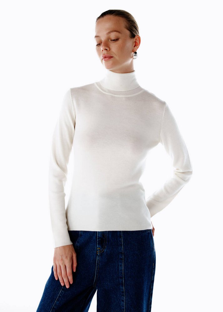 Extrafıne Merino Yün Karışımlı Triko Ekru