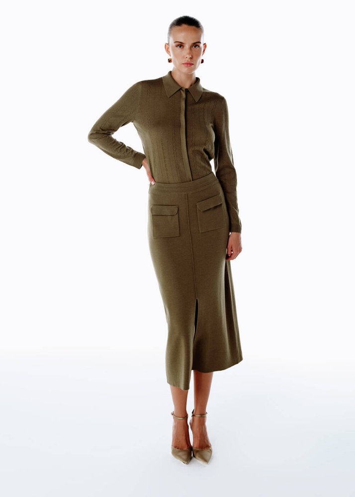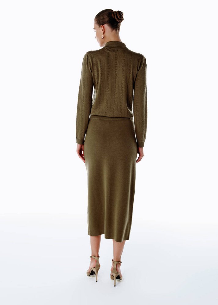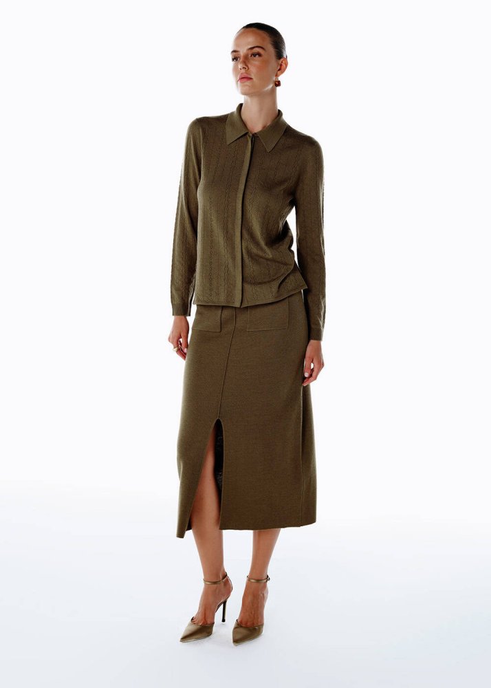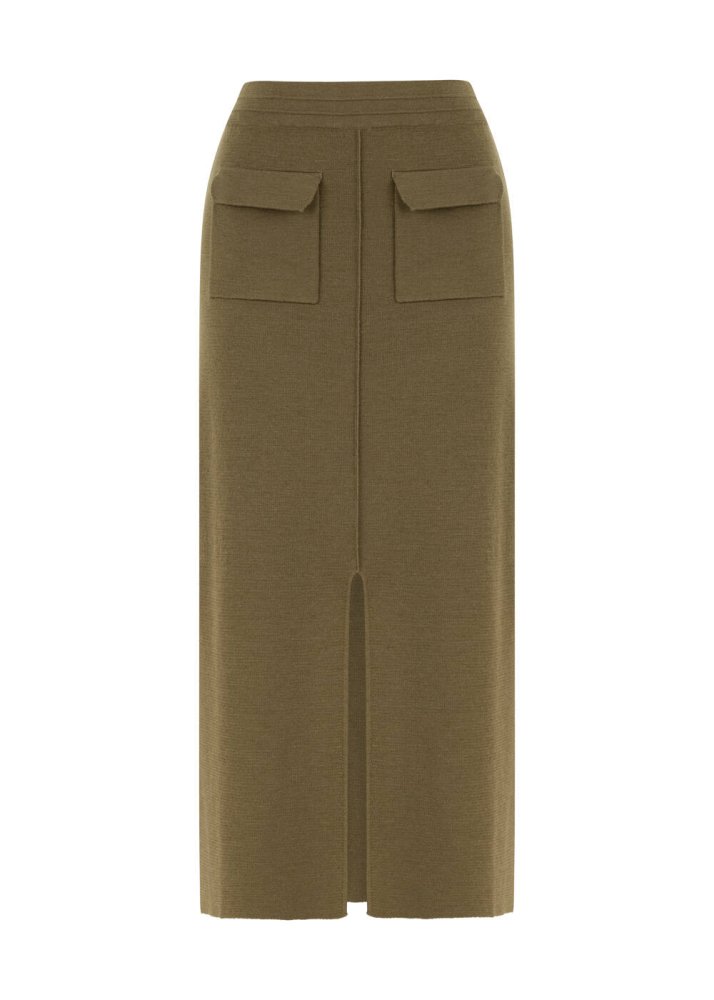 Extrafıne Merino Yün Karışımlı Triko Etek Olıvestone