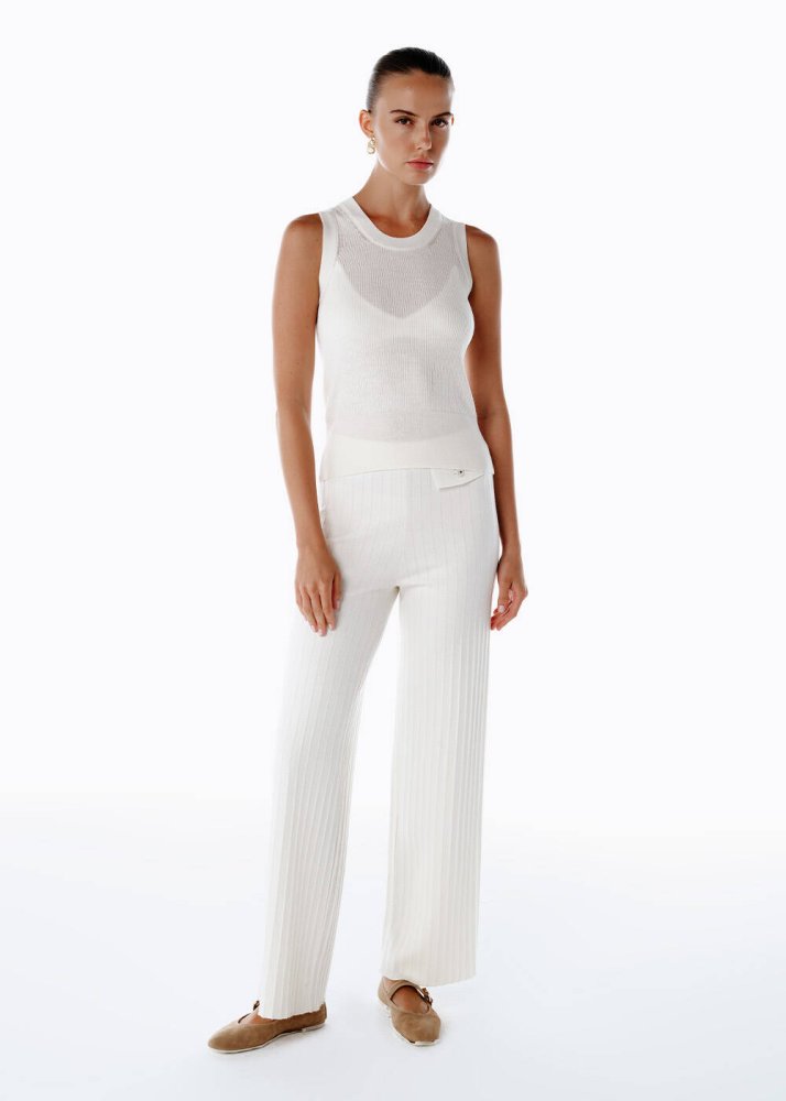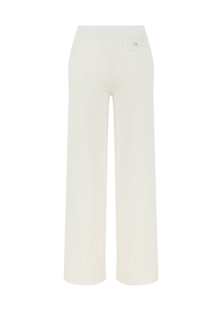 Extrafıne Merino Yün Karışımlı Triko Pantolon Ekru
