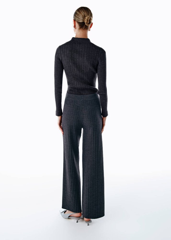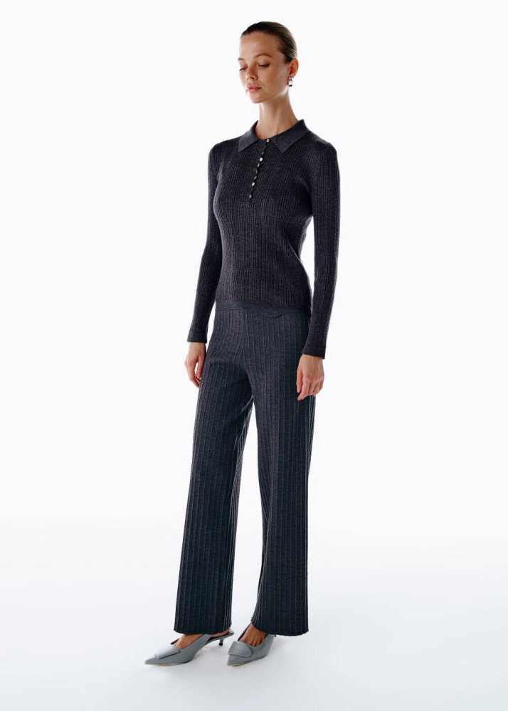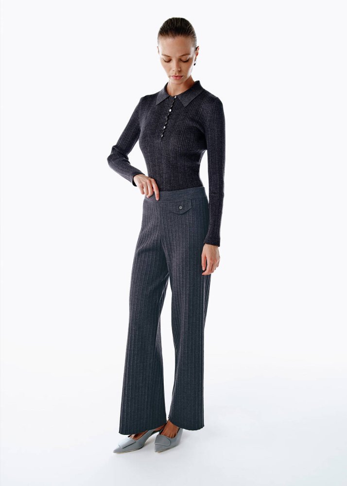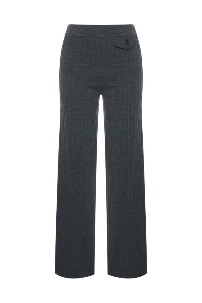 Extrafıne Merino Yün Karışımlı Triko Pantolon Koyu Gri