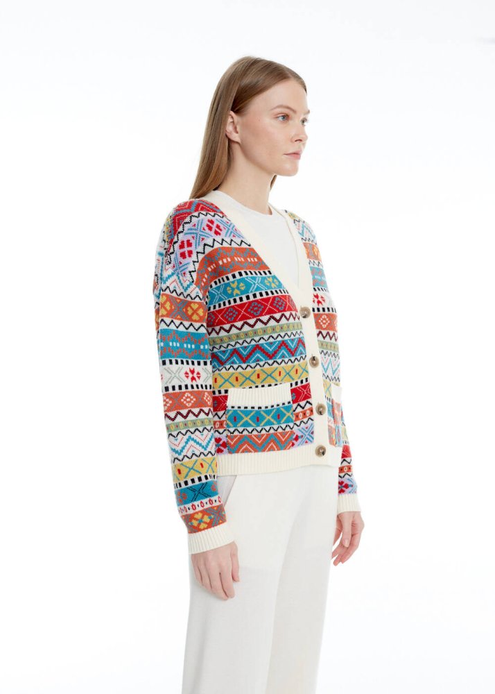 Faır Isle Desen Merino Yün Karışımlı Triko Hırka