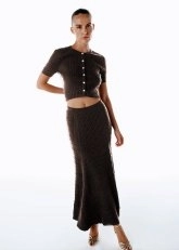 FANCY KNIT DETAILED COFFEE KNIT SKIRT