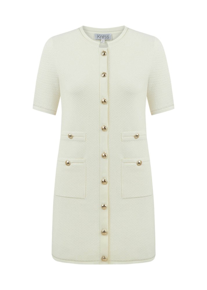 FANCY KNIT DETAILED ECRU MINI KNIT DRESS