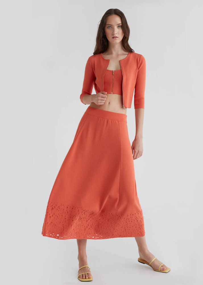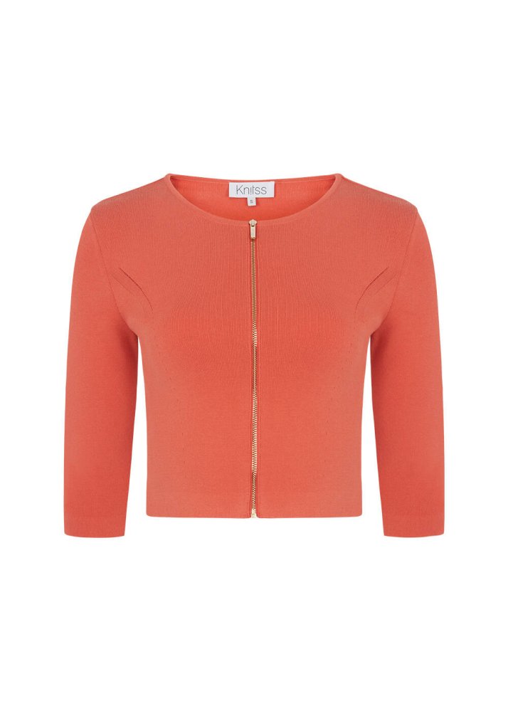 Fermuarlı Dar Kesim Mercan Crop Triko Hırka
