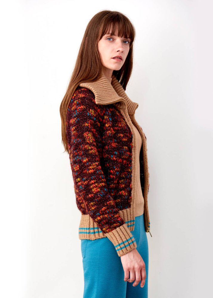Fermuarlı tarçın rengi triko ceket, Global Recycled Standard sertifikalı geri dönüştürülmüş elyaflardan üretilmiştir. Çevreye duyarlı kadınlar için tasarlanan ışıltılı ceket, hafta içi ve hafta sonu kombinlerinize rahatlıkla uyum sağlar. Knitss Kolesksiyonun, Mix&Match özelliği ile koleksiyonda yer alan diğer parçalarıyla uyum içerisindedir.