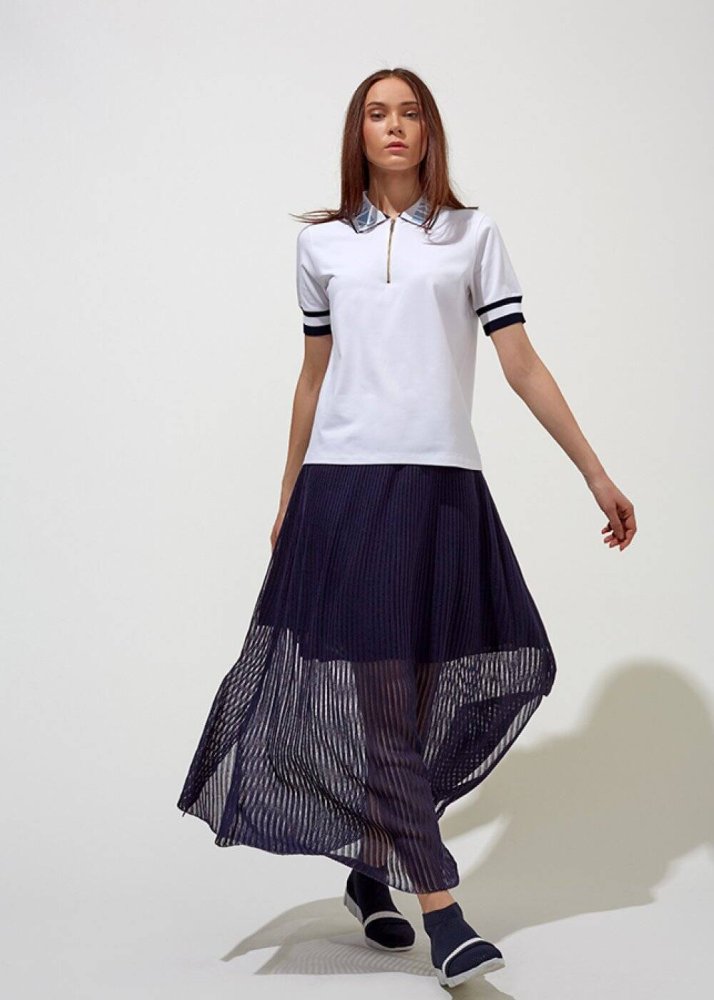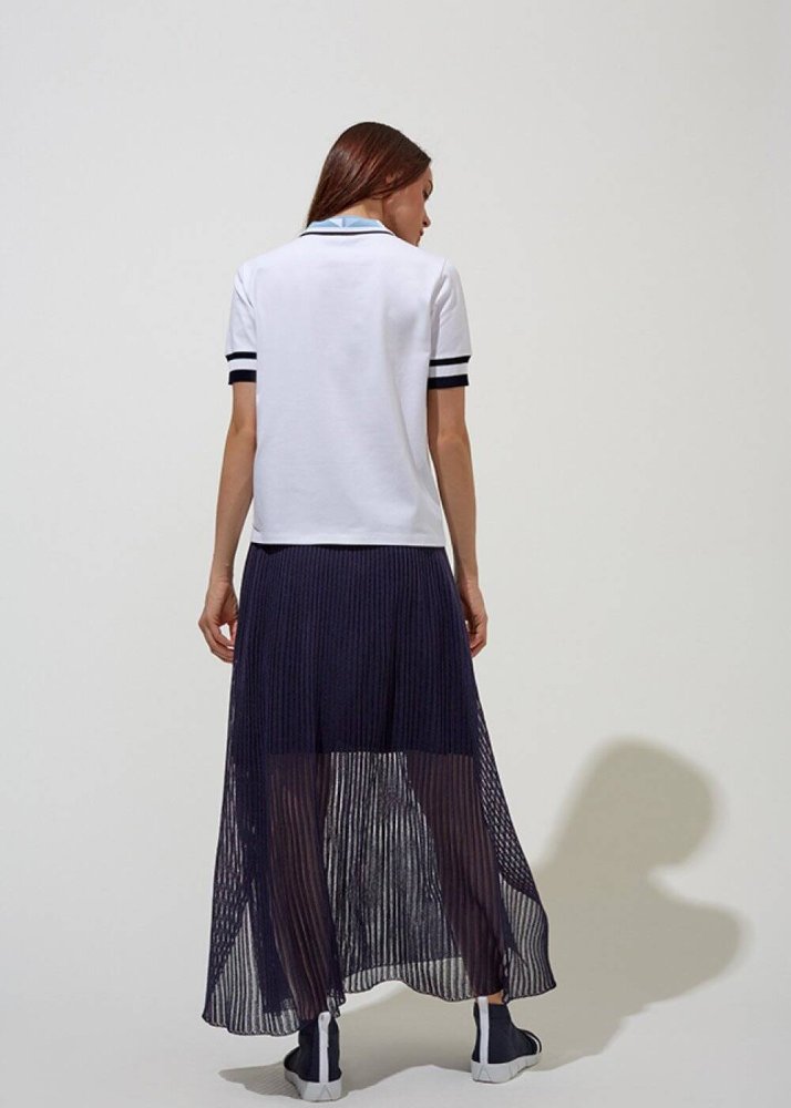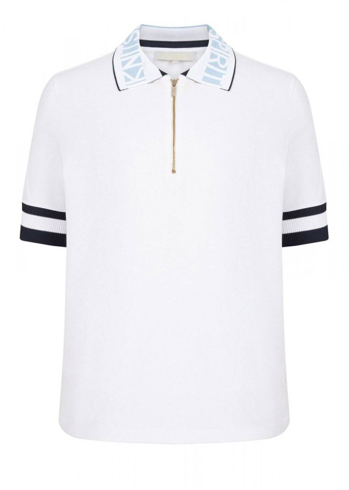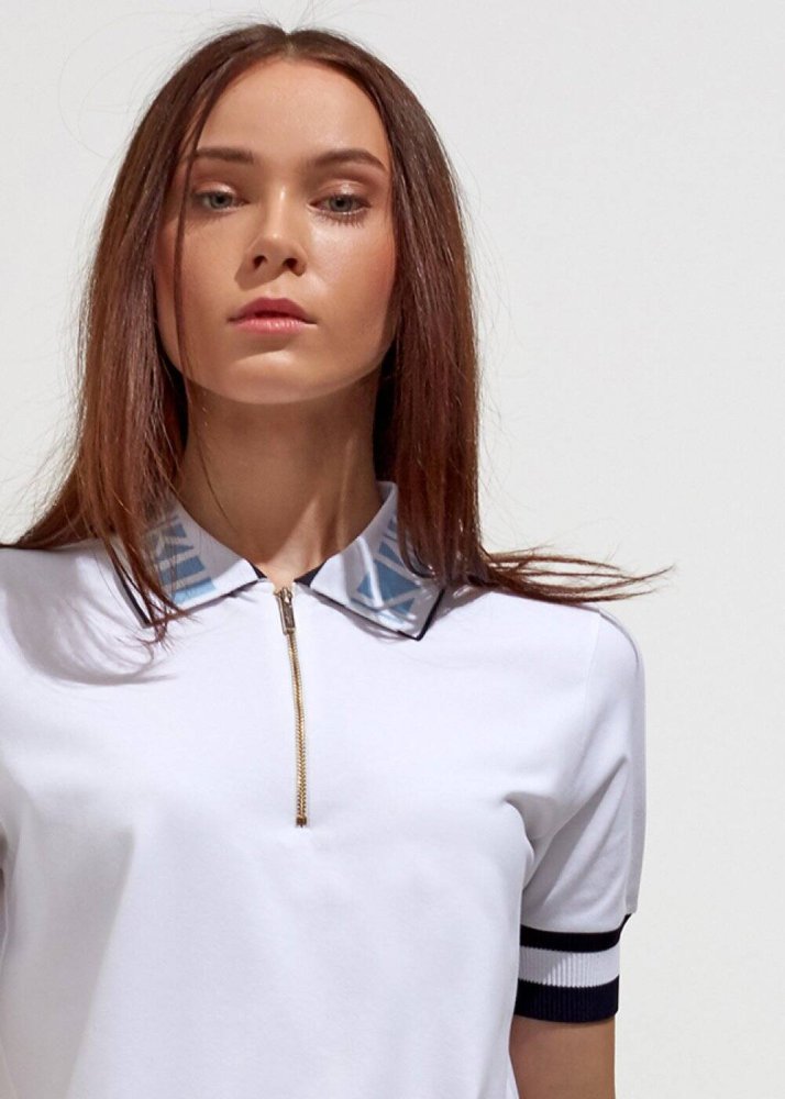 Fermuarlı Polo Yaka Pamuk Beyaz T-Shirt