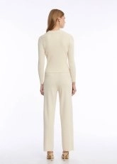Çift taraflı fermuarlı fitilli bej rengi triko hırka, minimal şıklığı ile uzun yıllar giyim dolabınızın vazgeçilmezlerinden olmaya adaydır. Mükemmel kalıbı ile feminen görünümünüzü destekleyen bej rengi fitil örgülü hırka, Knitss’in monokrom giyim seçeneği sunan diğer birçok parçası ile zahmetsizce eşleşerek sofistike kombinler vadeder.