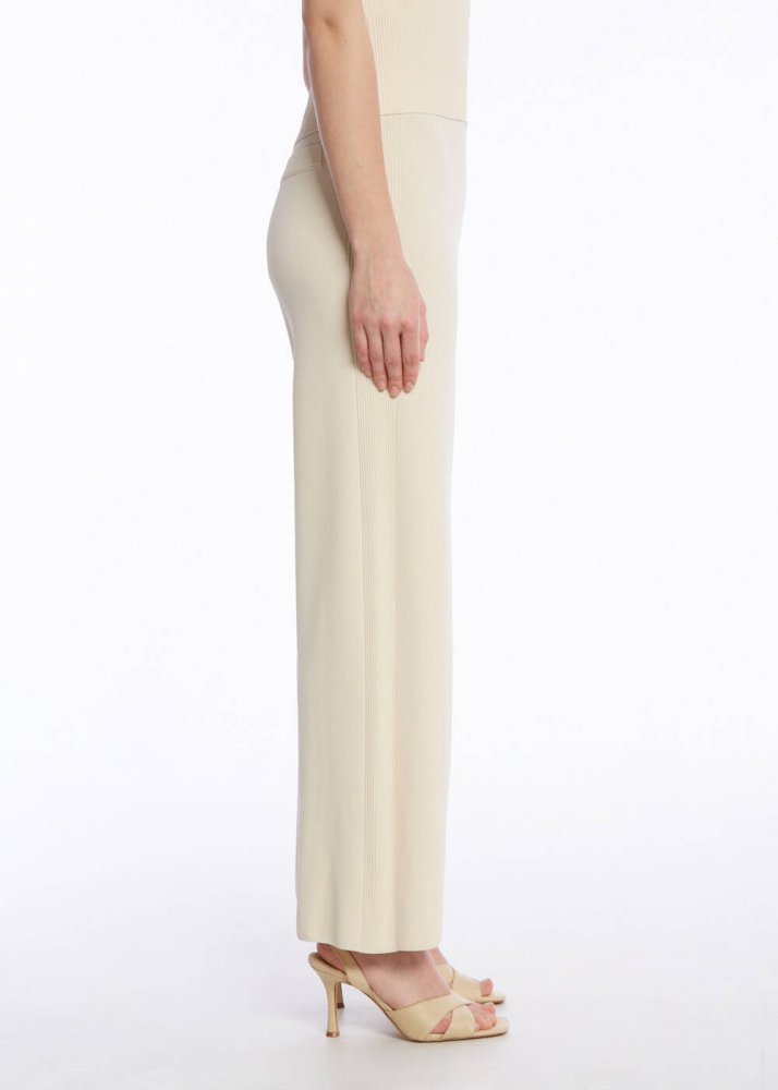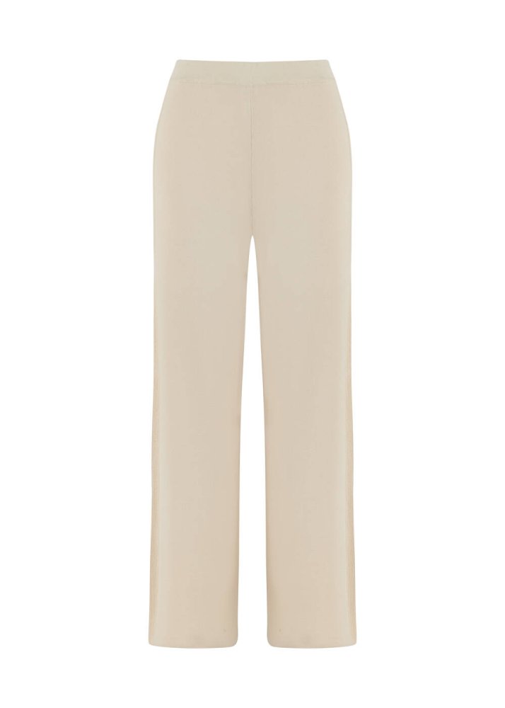 Fitil Örgü Detaylı Bej Triko Pantolon