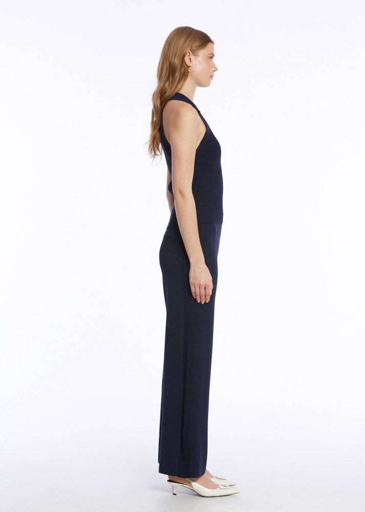 Konforu şıklıkla buluşturan yazlık triko pantolonlarla günün her anı harika hissedebilirsiniz. Knitss fitil örgü detaylı lacivert triko pantolon; rahat kalıbı, elastik beli, kusursuz duruşu ve günün her anına uyan kullanışlılığı ile gardırobunuzun kurtarıcı parçalarından olmaya adaydır. Monokrom kombinler için de Knitss’in üst grubundan birçok parça ile uyumlu olacak şekilde üretilmiştir.