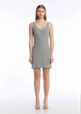 Yumuşak dokusu ve fitil örgü yapısıyla dikkat çeken gri mini triko elbise, sade şıklığıyla öne çıkıyor. V yaka detayı, zarif bir görünüm sunarken boyun hattını vurgulayarak feminen bir hava katıyor. Konforlu yapısı sayesinde gün boyu rahatlıkla giyilebilen bu model, minimal bir tarz arayanlar için mükemmel bir seçenek. Şıklığından ödün vermeyen ve modern bir stil yaratmak isteyenler için ideal olup, her anınıza zarif bir dokunuş katıyor.