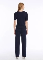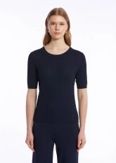 Fitil örgülü lacivert yarım kollu üst, günün her anına ve farklı tarzlara kolayca uyum sağlayan zamansız şıklığı ile giyim dolabınızın kurtarıcı parçalarından olmaya adaydır. İtalyan ipliklerinden Knitss’in zarif triko işçiliği ile üretilen kabartmalı fitil örgülü üst, hem günlük hem ofis kombinleri için ideal bir parçadır.