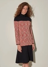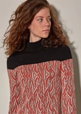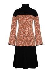 Flame Patterned Turtleneck Black Maxi Knit Dress