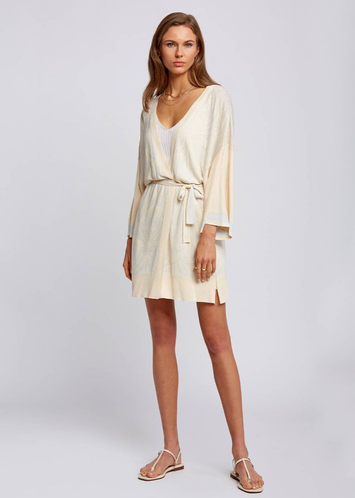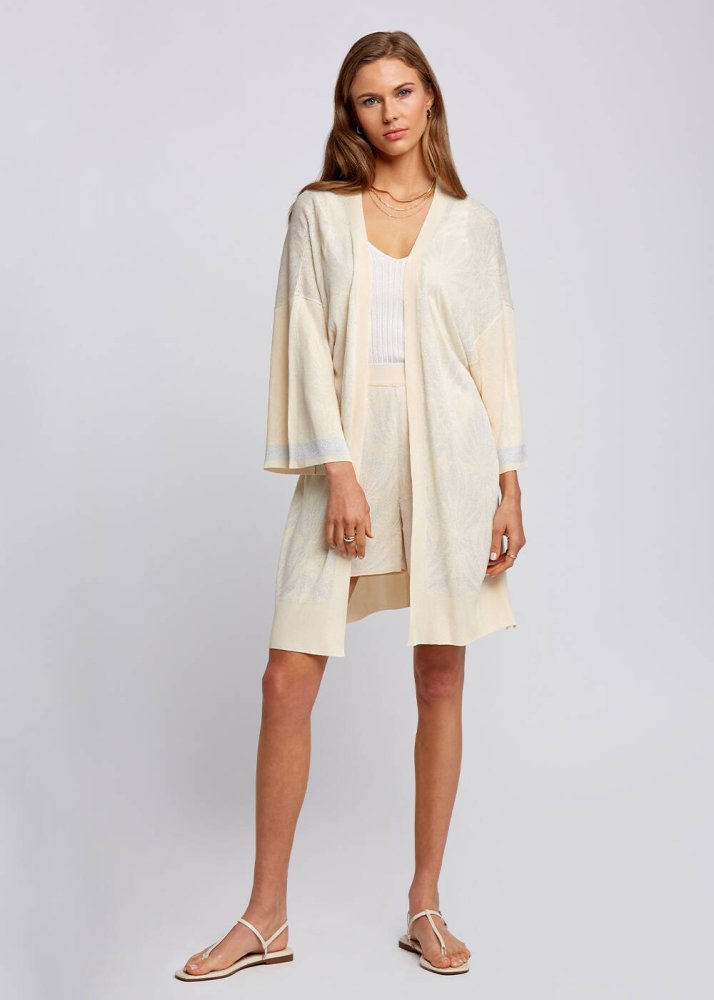Floral Pattern Beige Knit Kimono