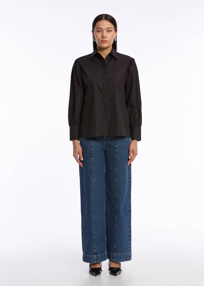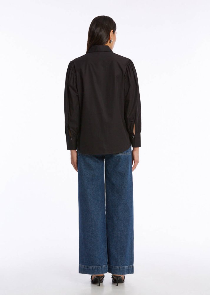 GATHERED DETAILED PURE COTTON BLACK SHIRT