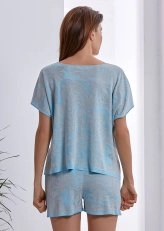 Geniş Yaka Mavi Desenli Triko Üst